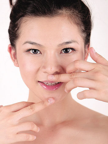 揉压鼻头,刺激鼻头的穴位,加强循环,平衡水油分泌。