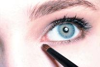 之后再用杏啡色涂在双眼皮眼折部位,方法最好由眼头开始向后慢慢扫上。